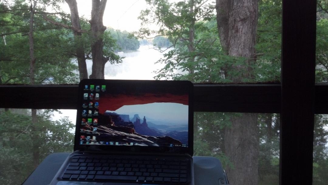 I would have no problems working from your cabin's office with that great view of the lake, that in its self is an inspiration. I could do without the office in the car. ;-). I remember a job I had in the past with a car office and very glad I ditched it, lol. My office is my kitchen.