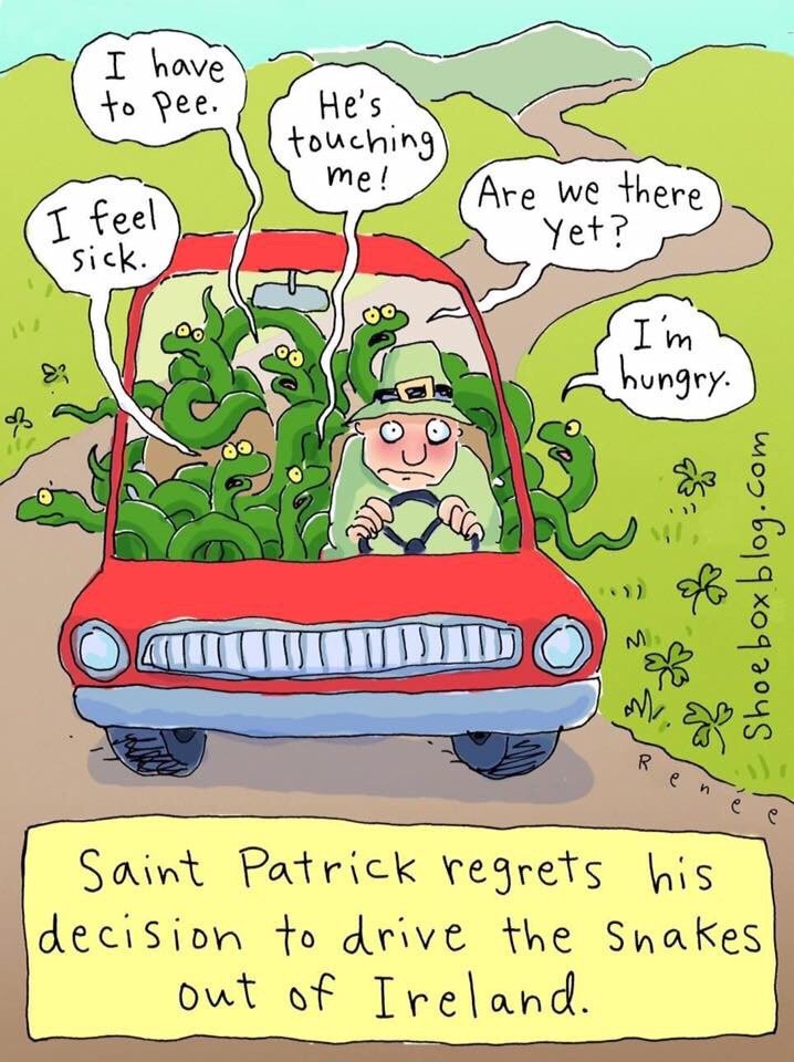 Given all the St Patrick's Day celebrations recently I thought some of you might appreciate this modern humorous rendition by a cartoonist of the good Saint's trials and tribulations when he drove the snakes out of Ireland!