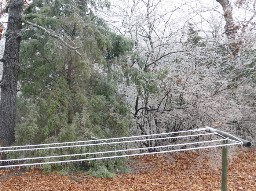 I had heard it raining all night, and our temperature was right at 32 degrees. The weather forecast had predicted freezing rain and ice, so this was no surprise. We were very lucky though, as the ice only broke off some branches from the trees. I have always felt that this is natures way of pruning the trees. Farther south of us, there were many people that were without power.