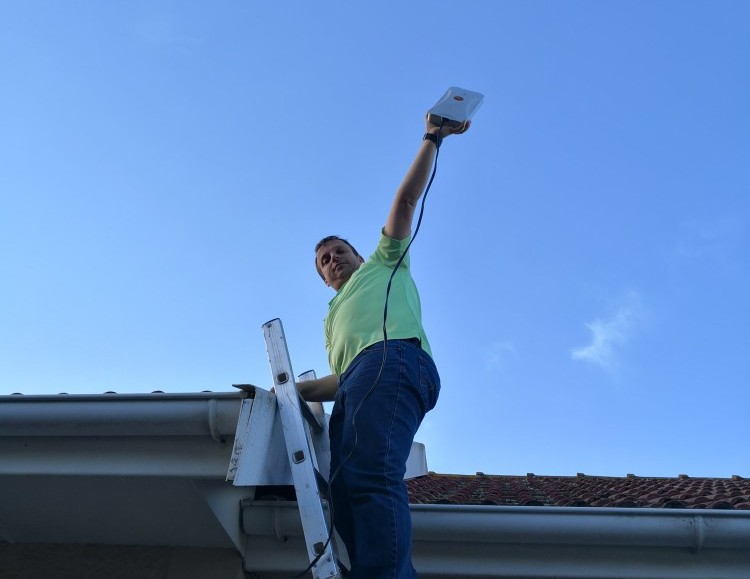 Good work, I wouldn't like climbing up a ladder either. Hope the aerial doesn't need to be too tall. We had to have one put in at our Computer Club, so tall it has a red light on top, but it works really well.