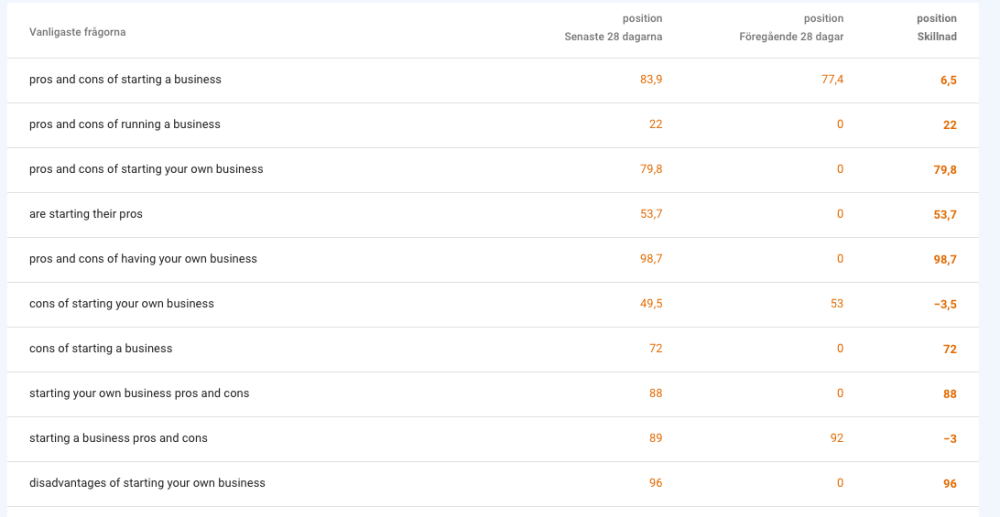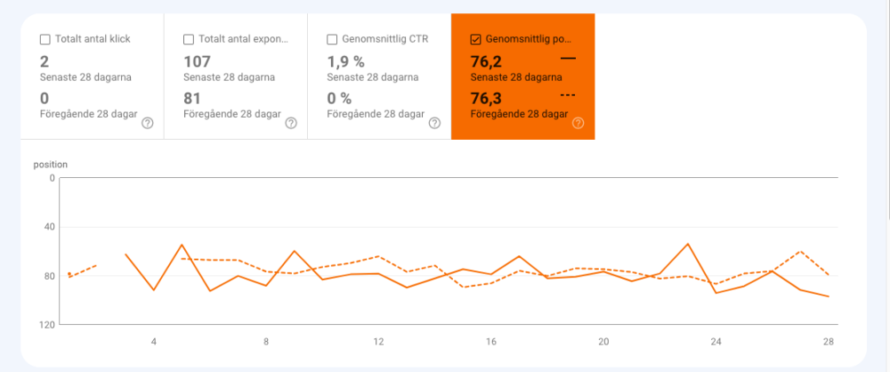 These are the stats from the last 28 days compared to the previous 28 days. And well, I am ranking 0,1 positions higher on average than the last 28 days.