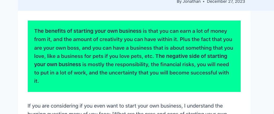 So about 4 weeks ago (a month) I made some research on my posts, on which ones are ranking, and which one aren't. And one thing I noticed was that, the articles where I added a little box at the top where I answer the overall question tend to rank higher.