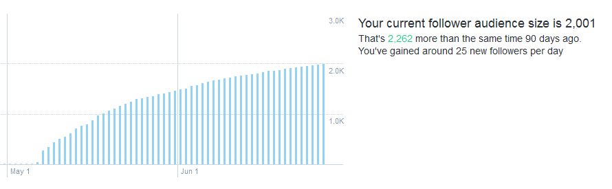 It's been about 3 and a half months now here at WA and I've been able to consistently grow my Twitter following. Today I checked my account as I always do every morning and I noticed I hit 2000 followers! This was actually one of my goals from last month which I missed so I'm pretty excited that I finally reached it!