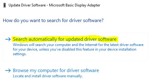 What you will need to do, is head on to the "Device Manager" Application (Search for it on Windows 10) Then Navigate to "Display adapters", from there, Right Click on the "Display adapter" then select "Update Driver software".