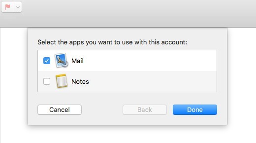 Step 9: Click the "Mail" checkbox in the "Select the apps..." dialog box and then click the "Done" button.
