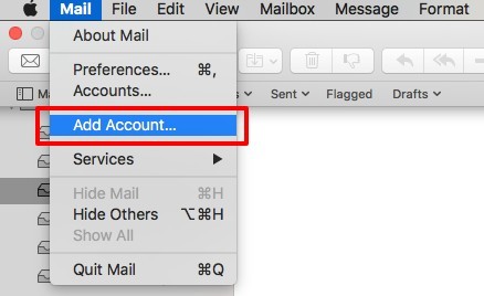 Step 3: While in the Mail application, click "Mail" > "Add Account..." in the top menu.