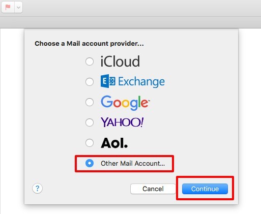 Step 4: Click the "Other Mail Account..." radio button and then click the "Continue" button.