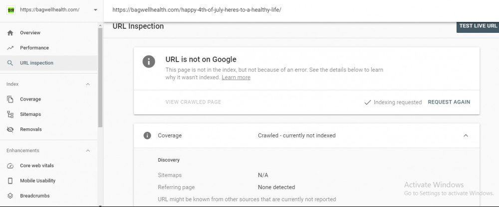 Once you are all set up, click on URL inspection and paste in the link to your post.