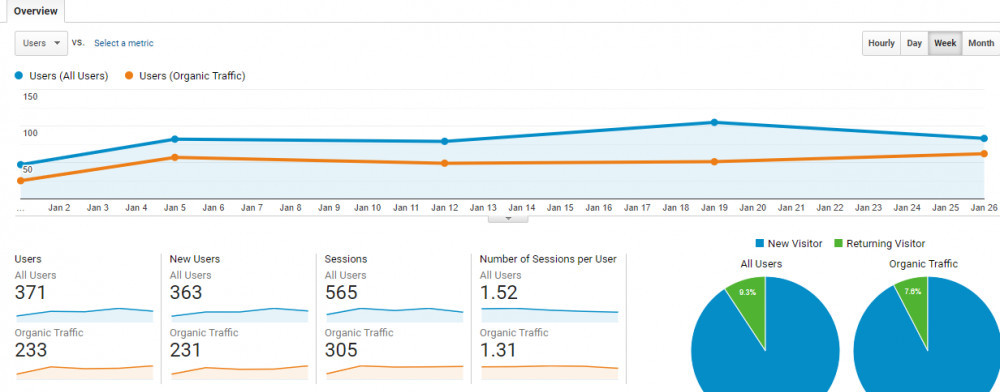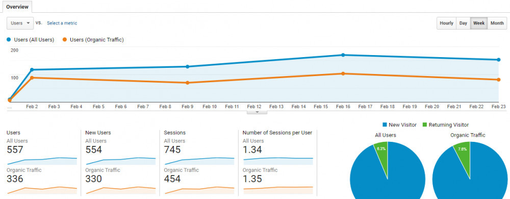 Mind you, my webite was already 10 months old in January with 65 posts but traffic is laughable.