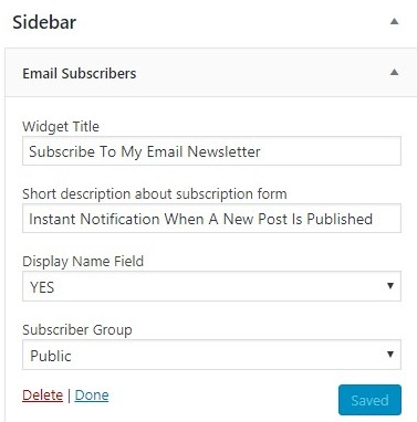 Once the plugin is installed you may edit how you want it to appear on your website by going on your widgets and then click on the drop down icon of the email subscriber widget as seen below.